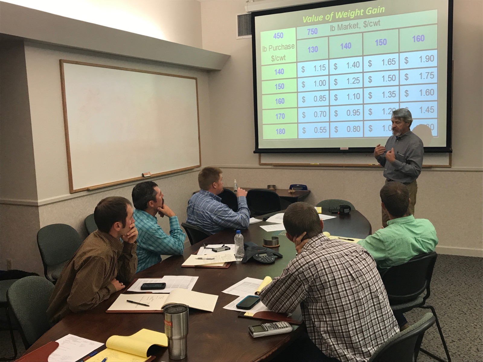 A beef cattle nutrition and management workshop was held with Ted McCollum, PhD, a long-time rancher, professor, and extension beef cattle specialist. This workshop included discussion on stocker cattle management and nutrition, and on practical beef cattle marketing and risk management. With valuable experience through personal ownership of ranches focused on cow-calf production, stocker cattle, a growing yard, and a feedyard, McCollum offered unique knowledge across all sectors of the pre-harvest beef industry.